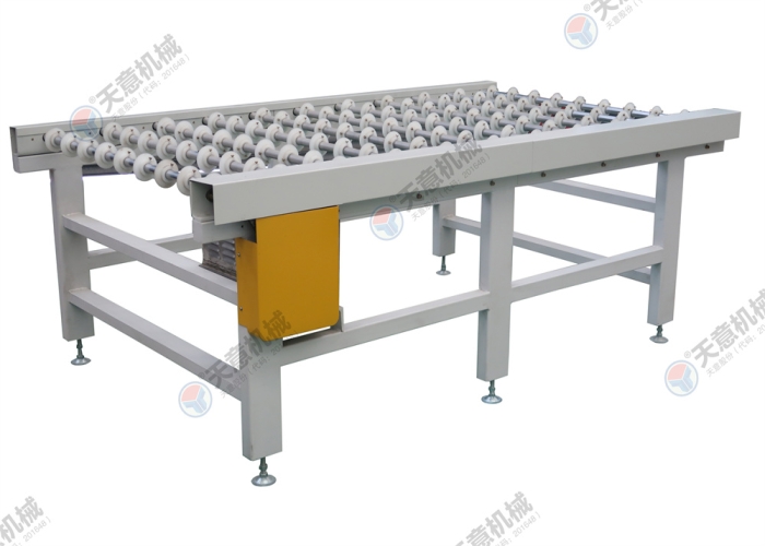 適用于背涂膠硅酸鈣板、水泥纖維板、玻鎂板等進行流水作業時的工件輸送。采用尼龍輪輸送,既能減少與膠面的接觸面積還能保證板材的平穩輸送。